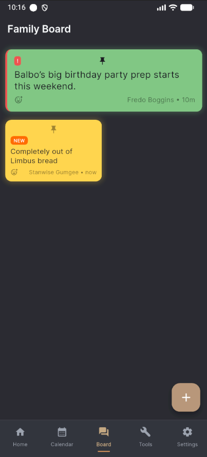 En delt oppslagstavle for familienotater, kunngjøringer og rask kommunikasjon.